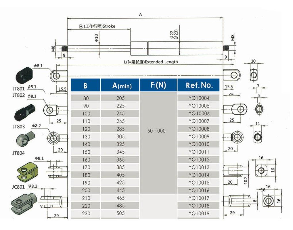 注:由于氣彈簧是非標(biāo)準(zhǔn)的,以上僅為型號的一部分。我們可以根據(jù)客戶的要求定制。