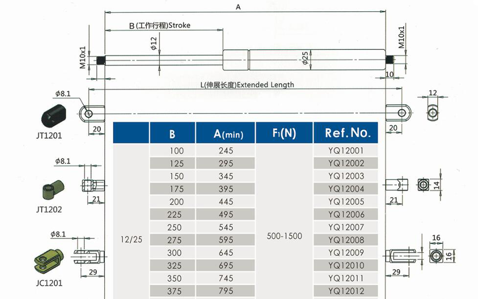 注:由于氣彈簧是非標(biāo)準(zhǔn)的,以上僅為型號的一部分。我們可以根據(jù)客戶的要求定制。