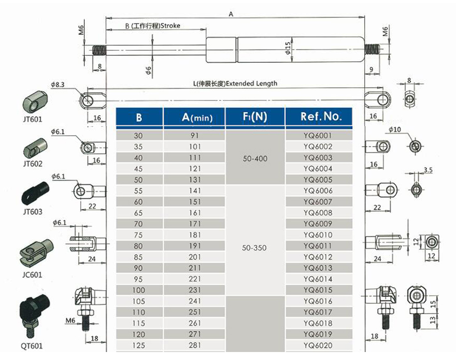 注:由于氣彈簧是非標(biāo)準(zhǔn)的,以上僅為型號(hào)的一部分。我們可以根據(jù)客戶的要求定制。